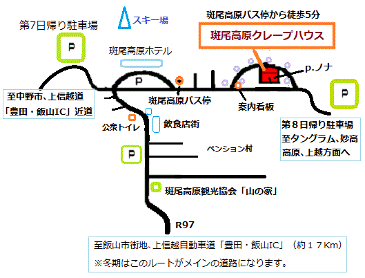 斑尾高原クレープハウス(テイクアウト店)のメニューは10種類の生クリーム系と、りんごバターシュガーなどの温かいクレープ、軽食にお勧めの自家製チキンハムを使ったチーズ系クレープをご用意しています。あと、ランチタイム限定となりますが、テイクアウト向けに大人気の「特製サラダ巻きガレット900円」のご注文を承っております(少々お時間がかかりますので1~2時間くらい前までにお電話いただければスムーズです)。
